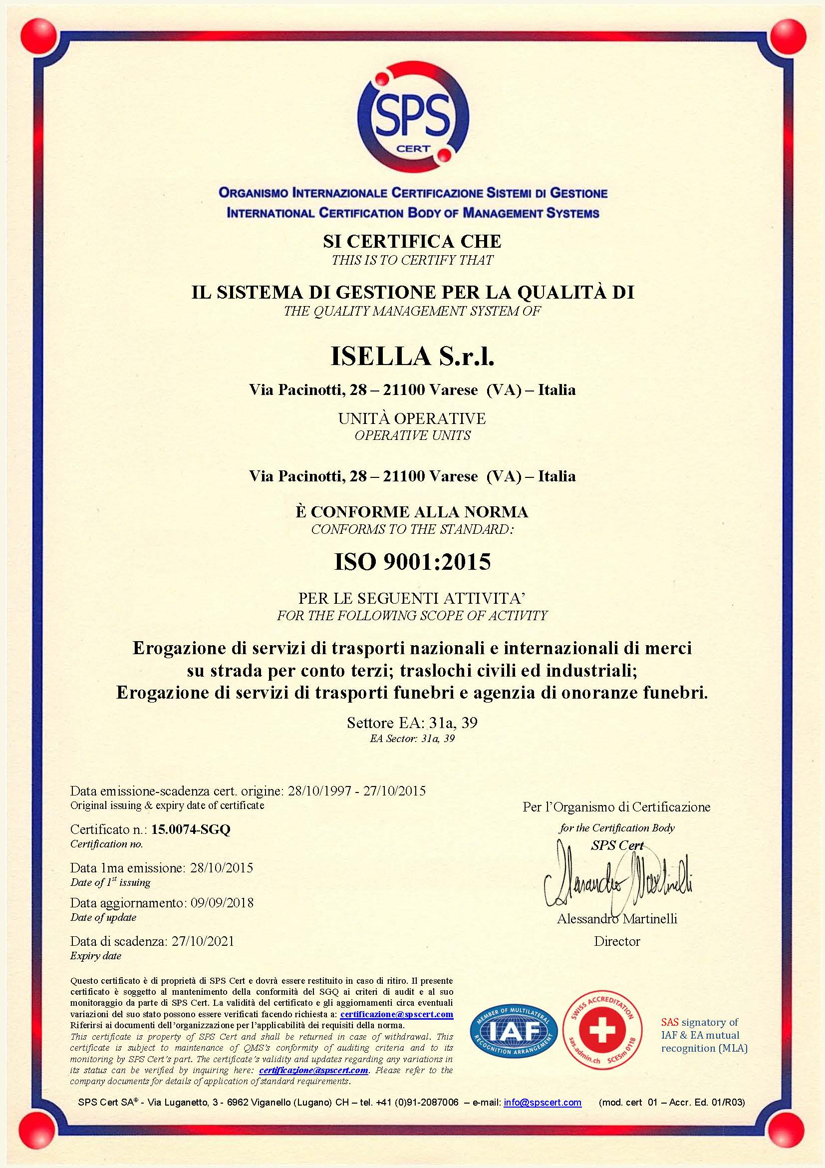 Isella – Trasporti e Traslochi adotta un sistema di gestione per la qualità conforme alla norma ISO 9001:2015 per le seguenti attività: